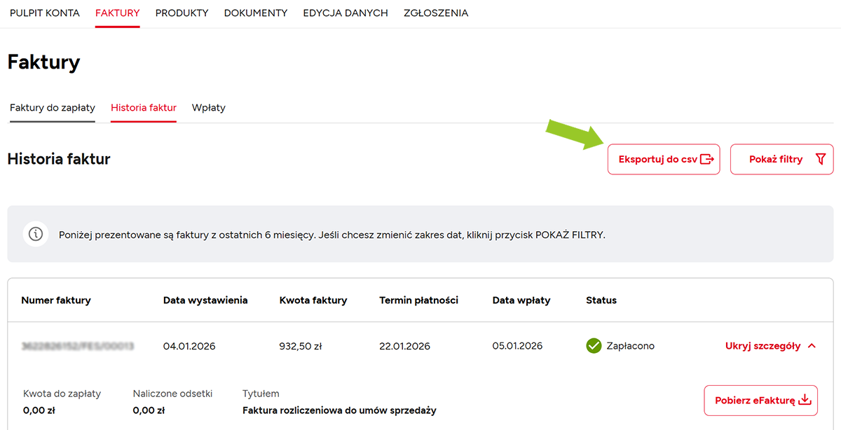 Saldo fakturowe to stan konta fakturowego wynikający z zestawienia Twoich faktur.