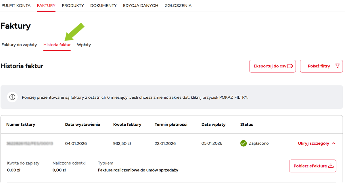 - brak należności, co oznacza, że Twoje faktury są opłacone;